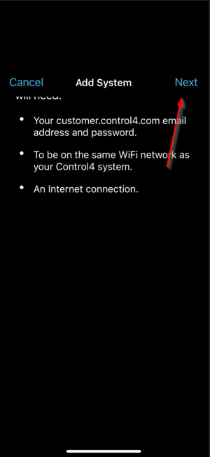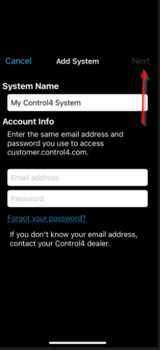 7: Enter a system name which can be anything. Enter the credentials for customer.control4.com. Then click Next. If you do not know the credentials for customer.control4.com click Forgot your password? or follow this document: https://support-thlproducts.freshdesk.com/a/solutions/articles/73000605201